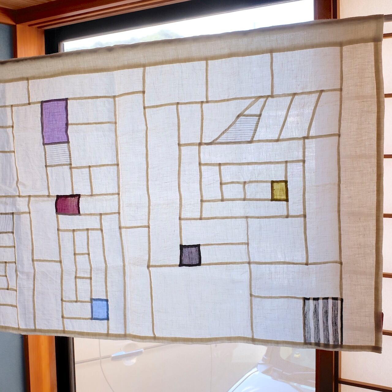 ホワイトのリネンをベースにカラフルなリネンも入れた作ったポジャギです。