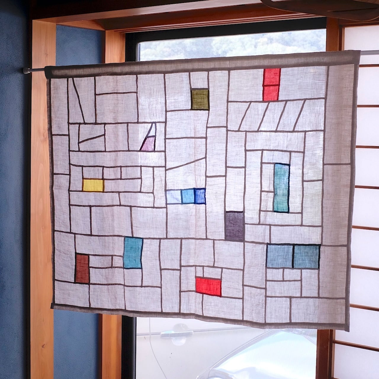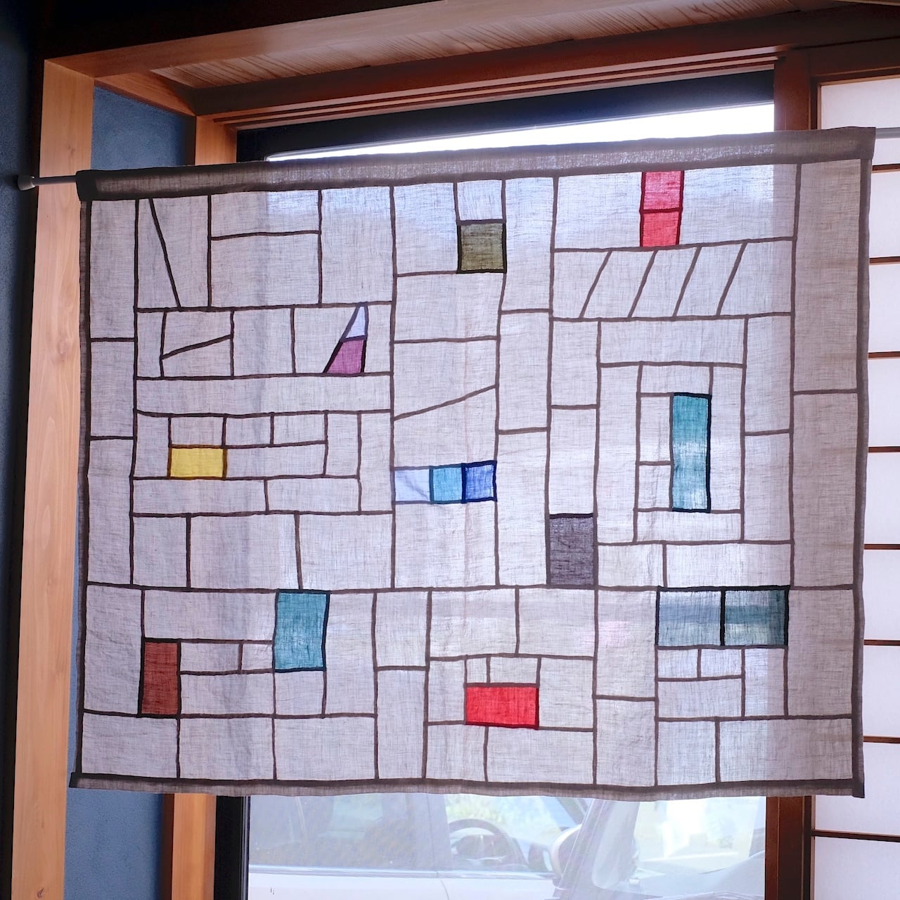生成り色のリネンをベースにカラフルなリネンも入れた作ったポジャギです。