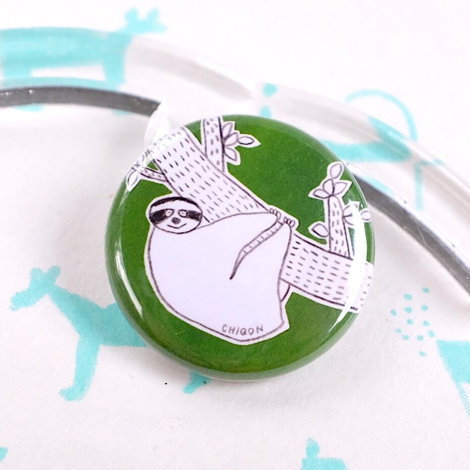 【CHIQON】ROUND 缶バッチ「ナマケモノ」