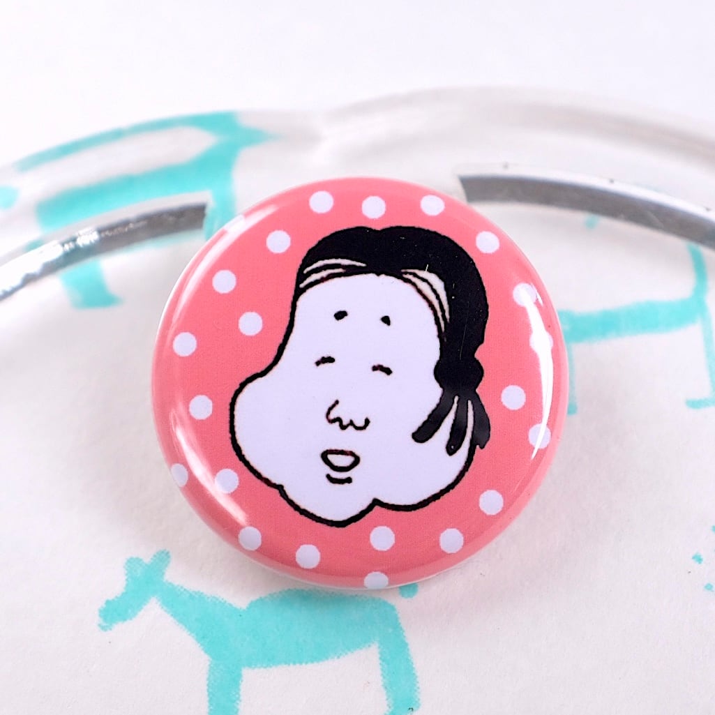 【CHIQON】ROUND 缶バッチ「おかめ」