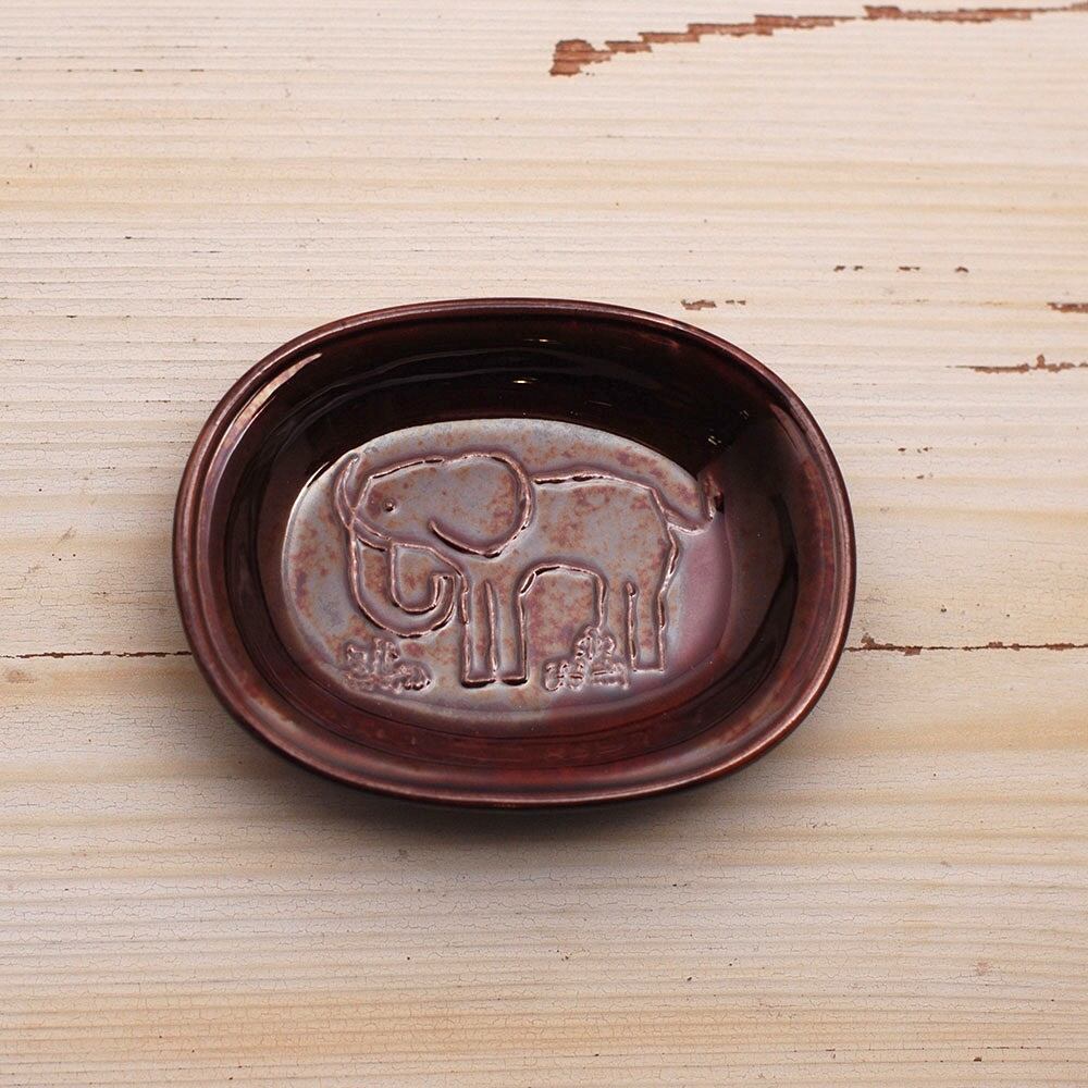 【トラネコボンボン 】オーバル豆皿「ゾウ・ブラウン」