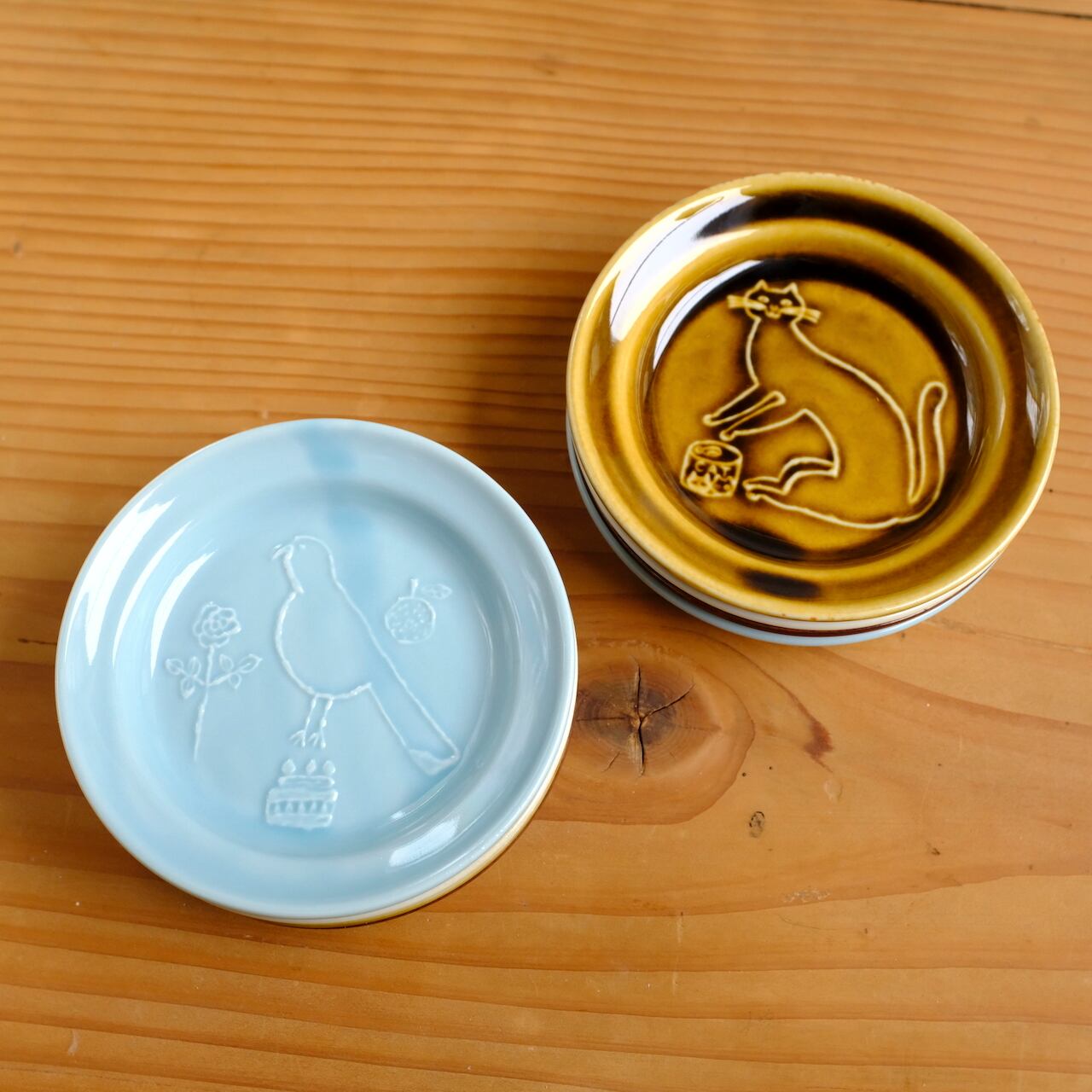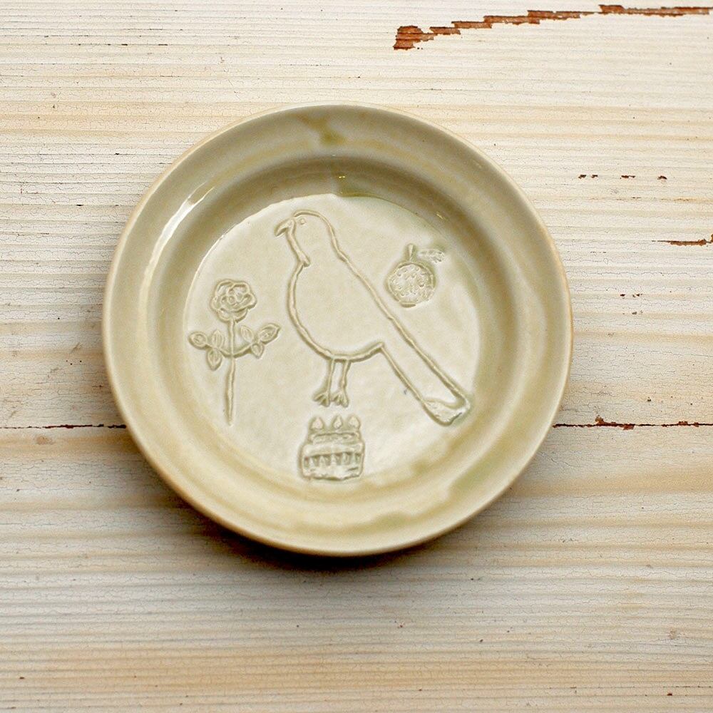 【トラネコボンボン 】ラウンド豆皿「トリ・ベージュ」