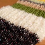 編み物は糸の始末をするのがとても大変で、糸を変えた分たくさん手間がかかるのですが、それを結び目にすることで手間を軽くしました。