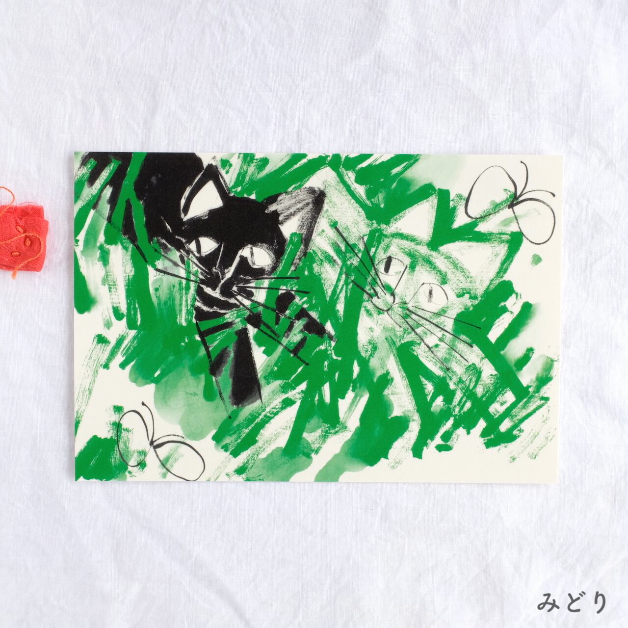 【きくちちき】ポストカード「しろねこくろねこ・みどり」
