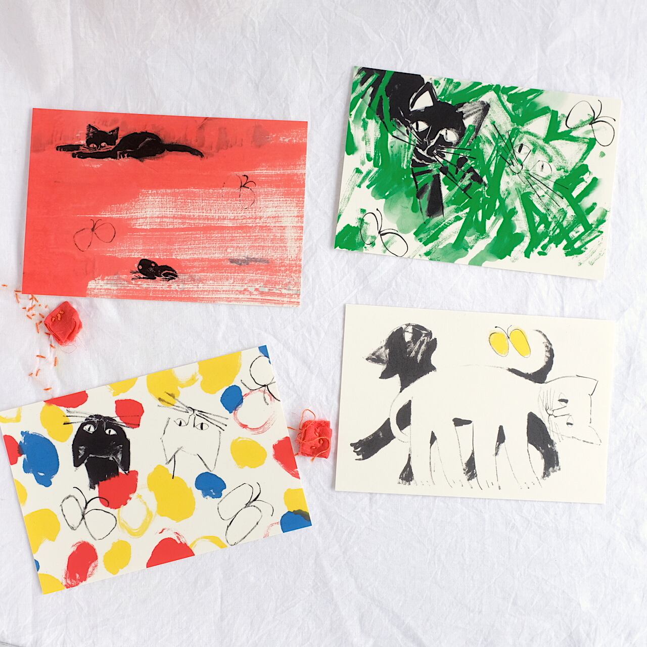 絵本「しろねこくろねこ」(きくちちき作・絵/学研)の一場面のポストカードです。