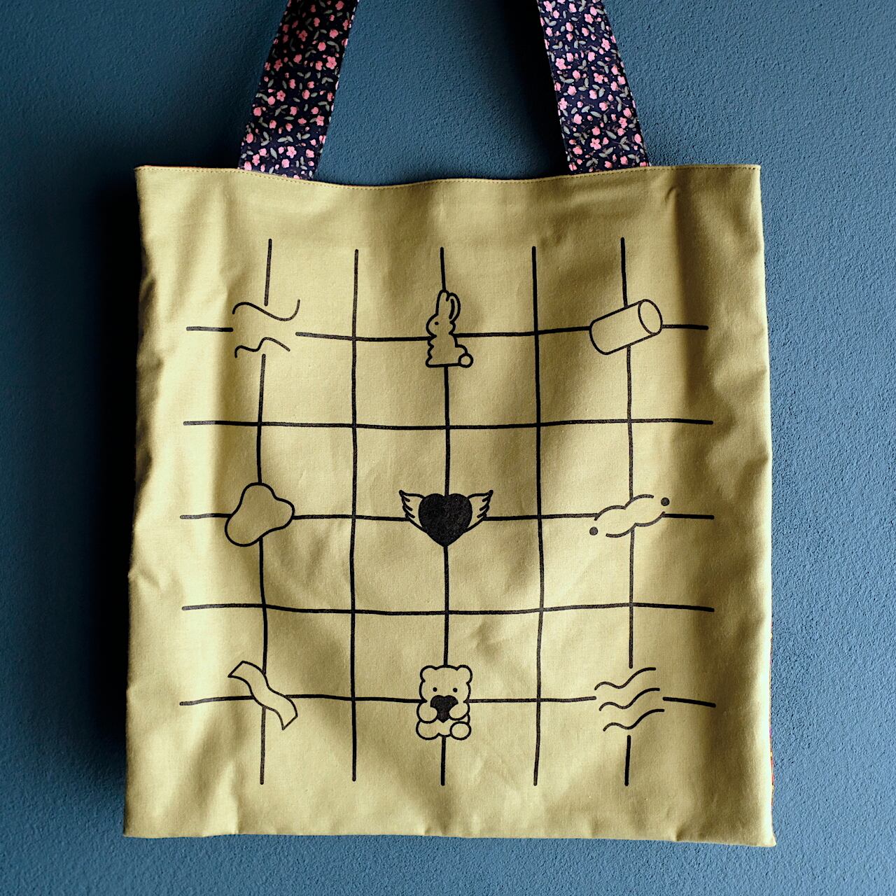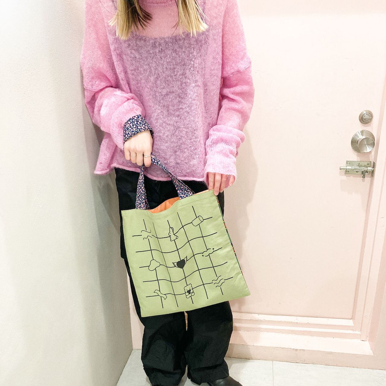 emiumigumiお馴染みのモチーフがプリントされたトートバッグ。