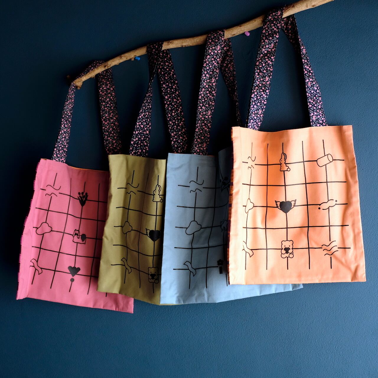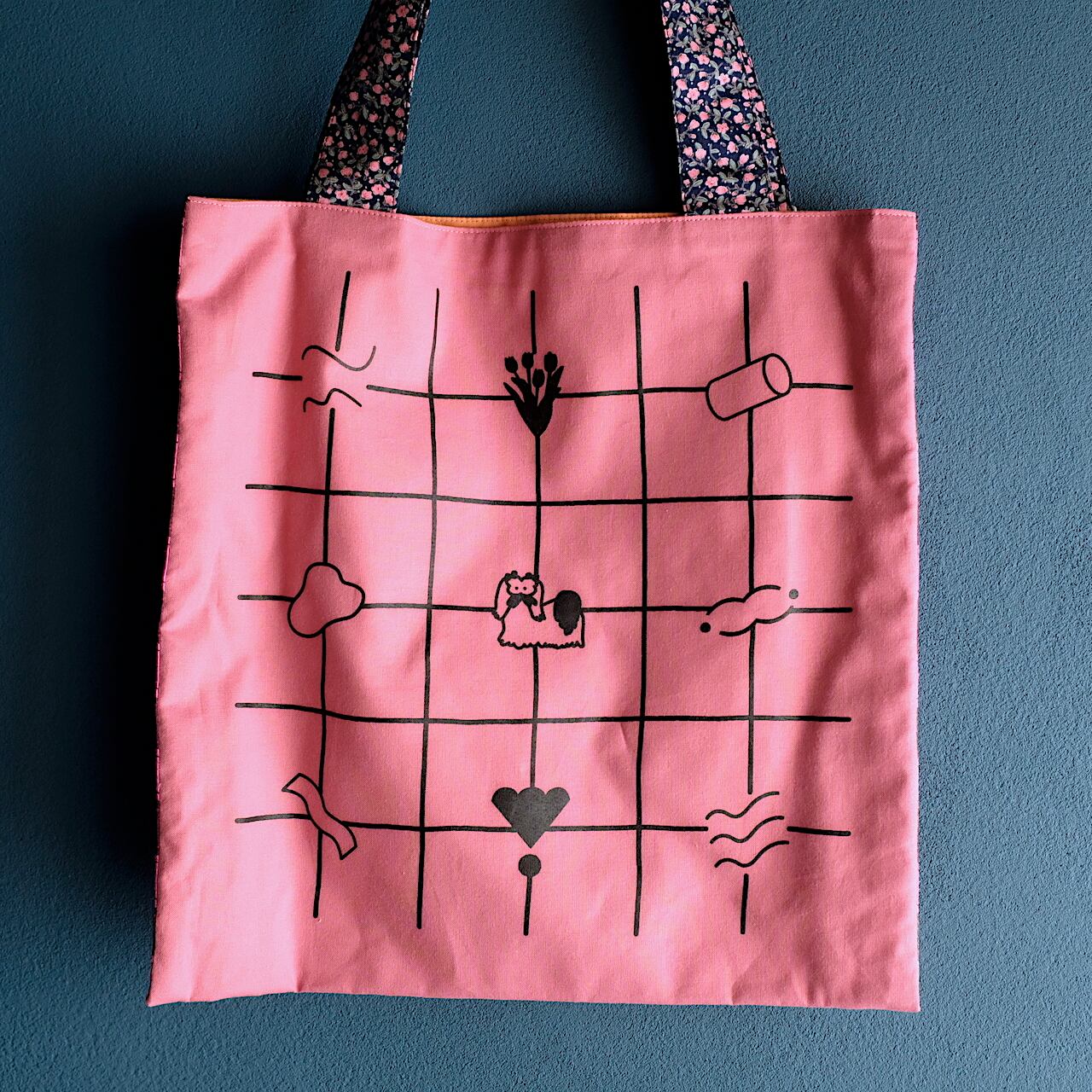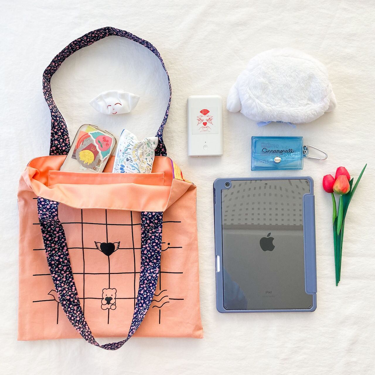 emiumigumiお馴染みのモチーフがプリントされたトートバッグ。