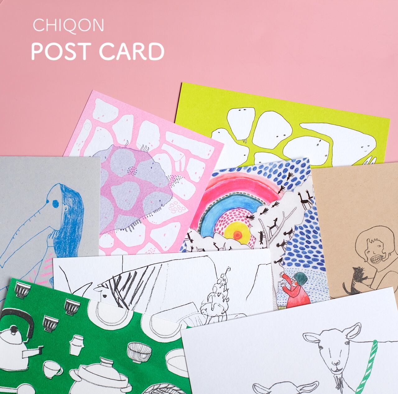 ハガキサイズに描かれたCHIQONの世界です。