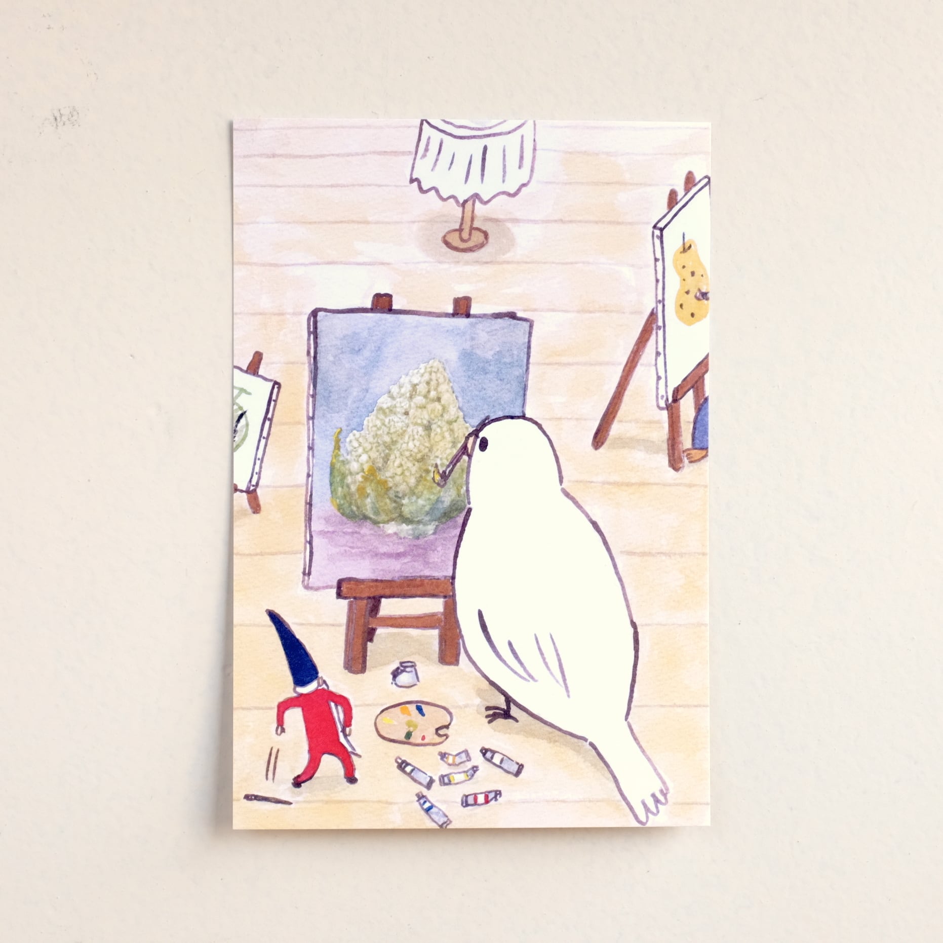 小人の豆本を作ったり猫のイラストを描いたりしながら、幼稚園の絵画教室の講師をしている。
