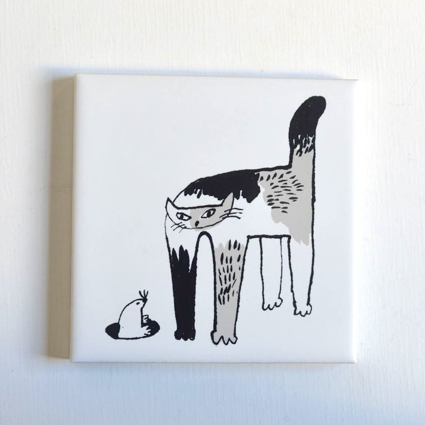 【トラネコボンボン】プリントタイル 「モグラとキャット」