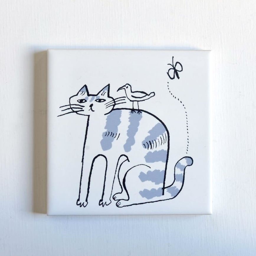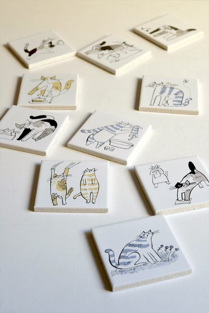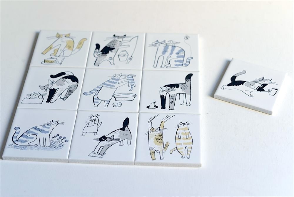 【トラネコボンボン】プリントタイル 「ぼんやりキャット」