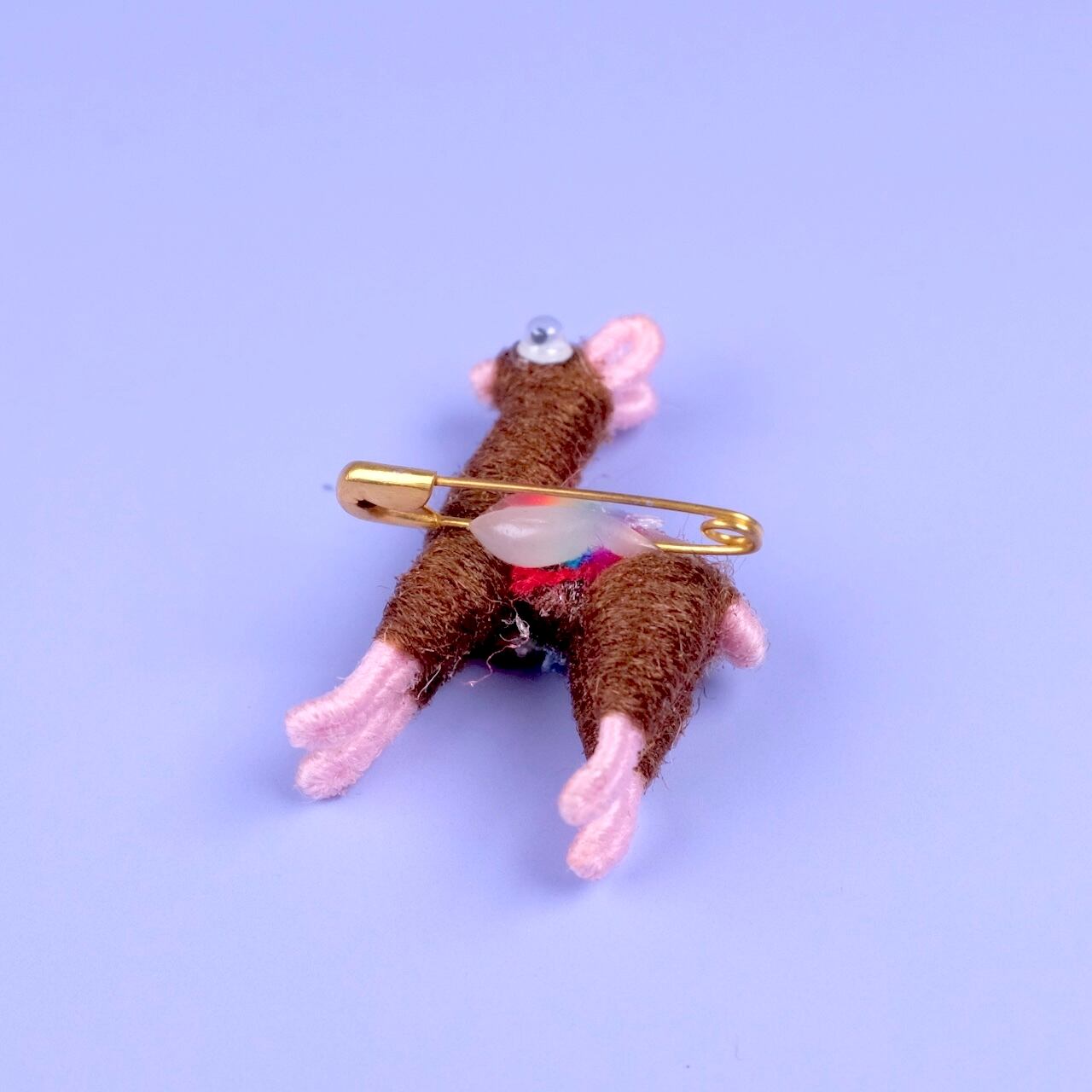アルパカブローチ「ブラウン・ライトピンク」