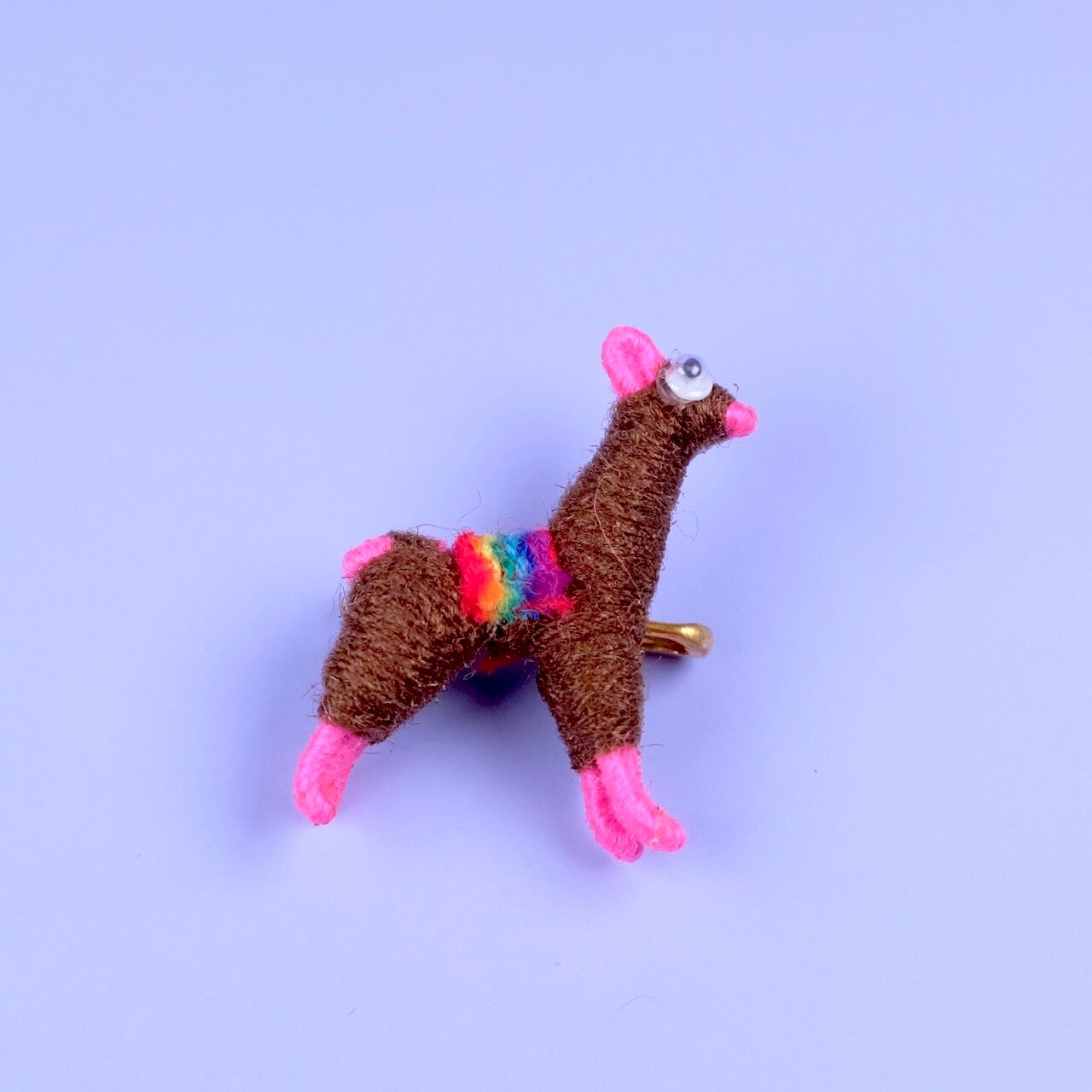 アルパカブローチ「ブラウン・ピンク」