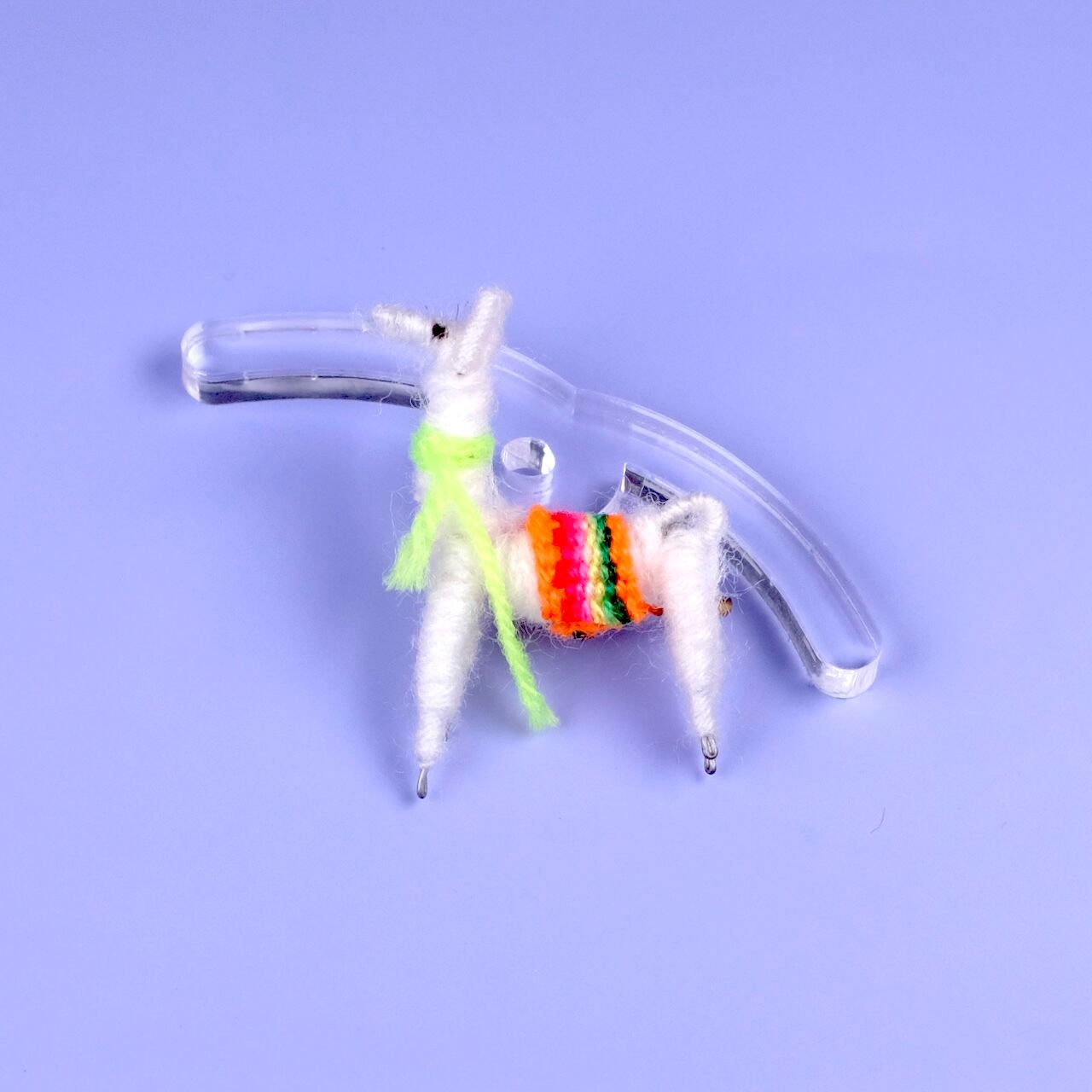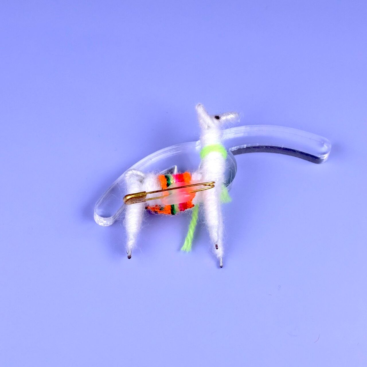 アルパカブローチ「ホワイト・ネオンイエロー」