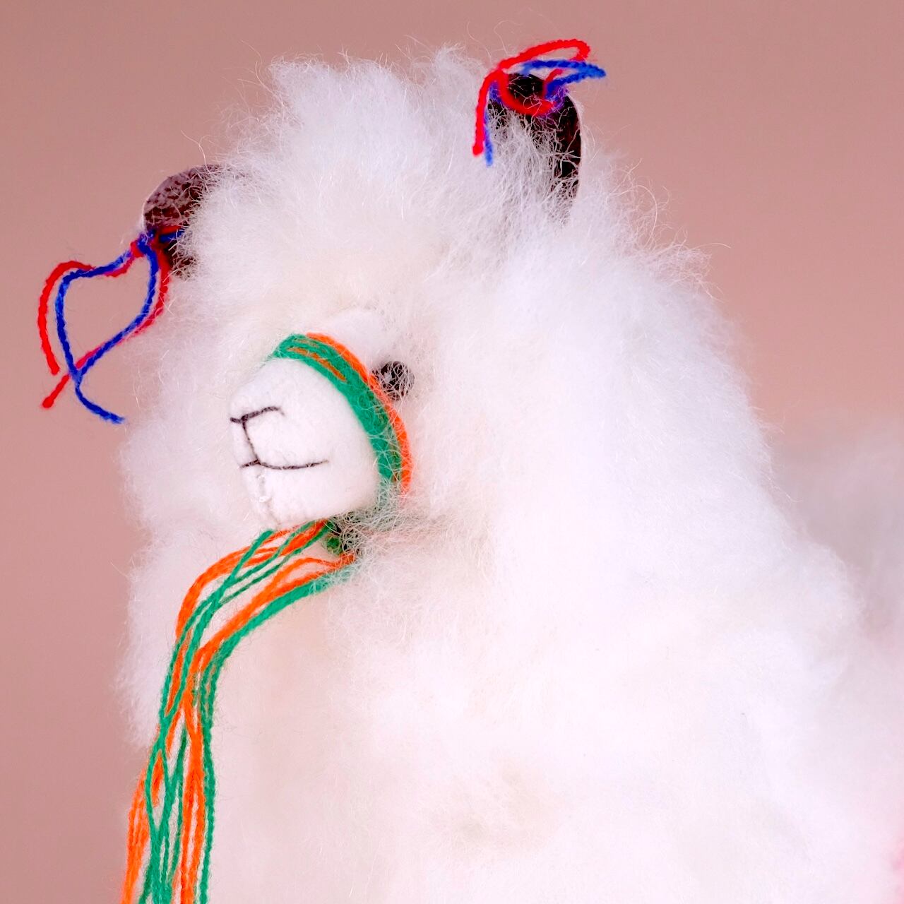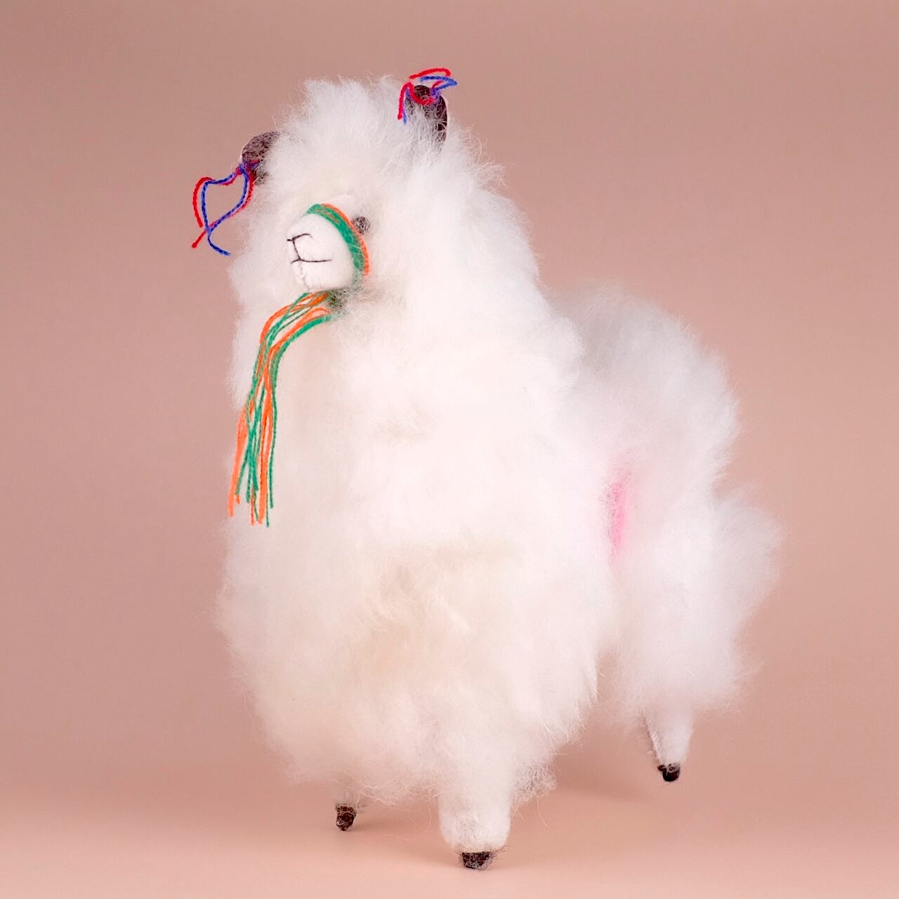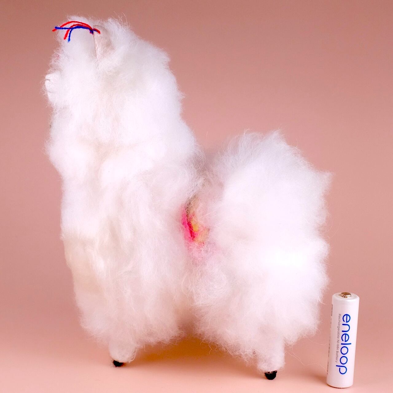ペルーの高地に住むアルパカの毛でできたぬいぐるみです。