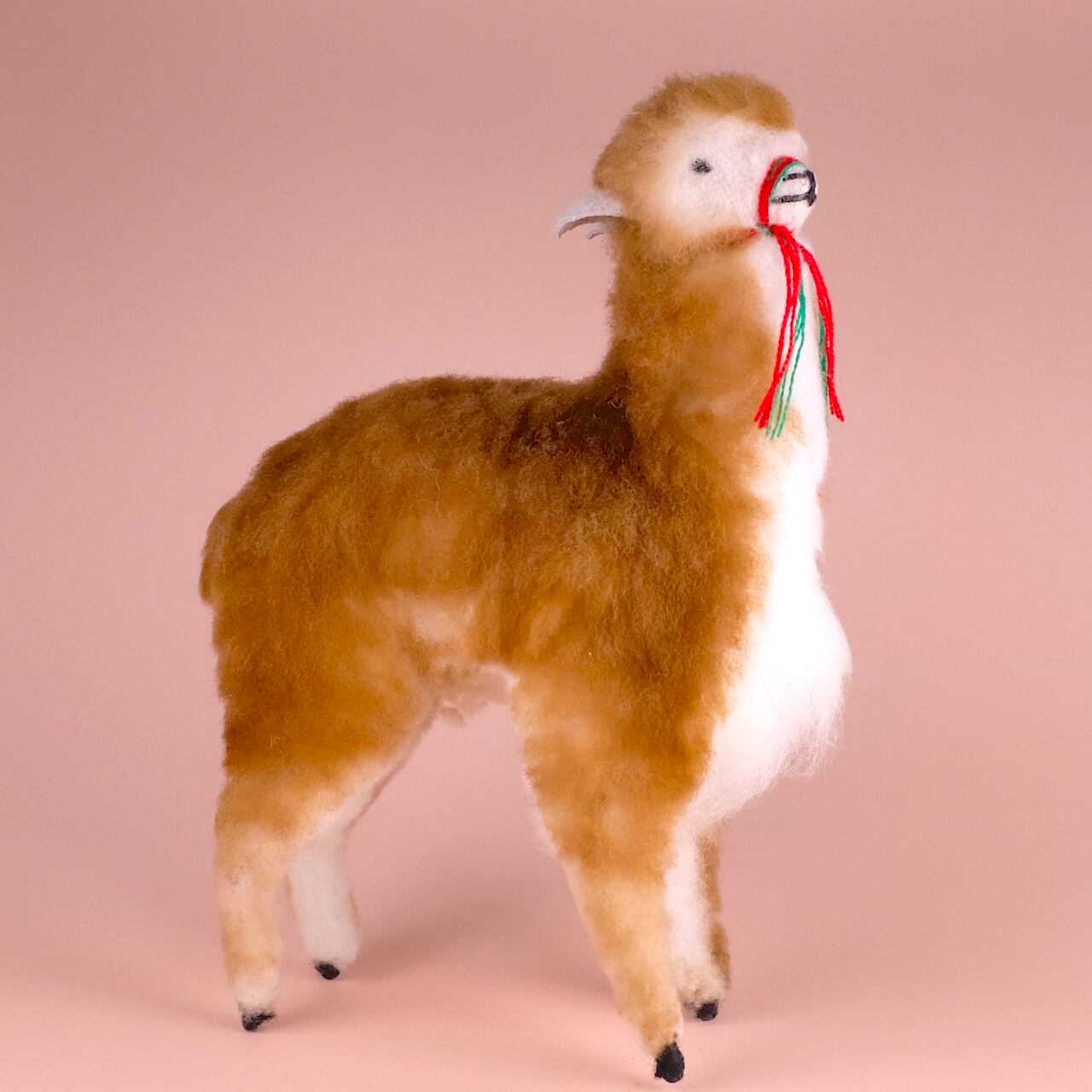 ふわふわ柔らかい手触りのビクーニャと羊の毛でできたぬいぐるみです。