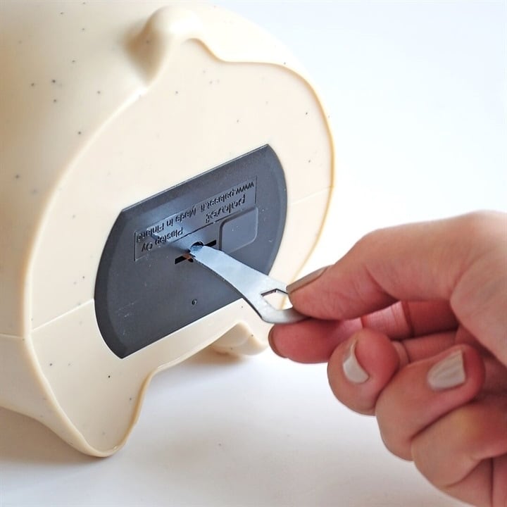 底には開閉する蓋があり付属のカギを差し込み回して中のお金を取り出せます。