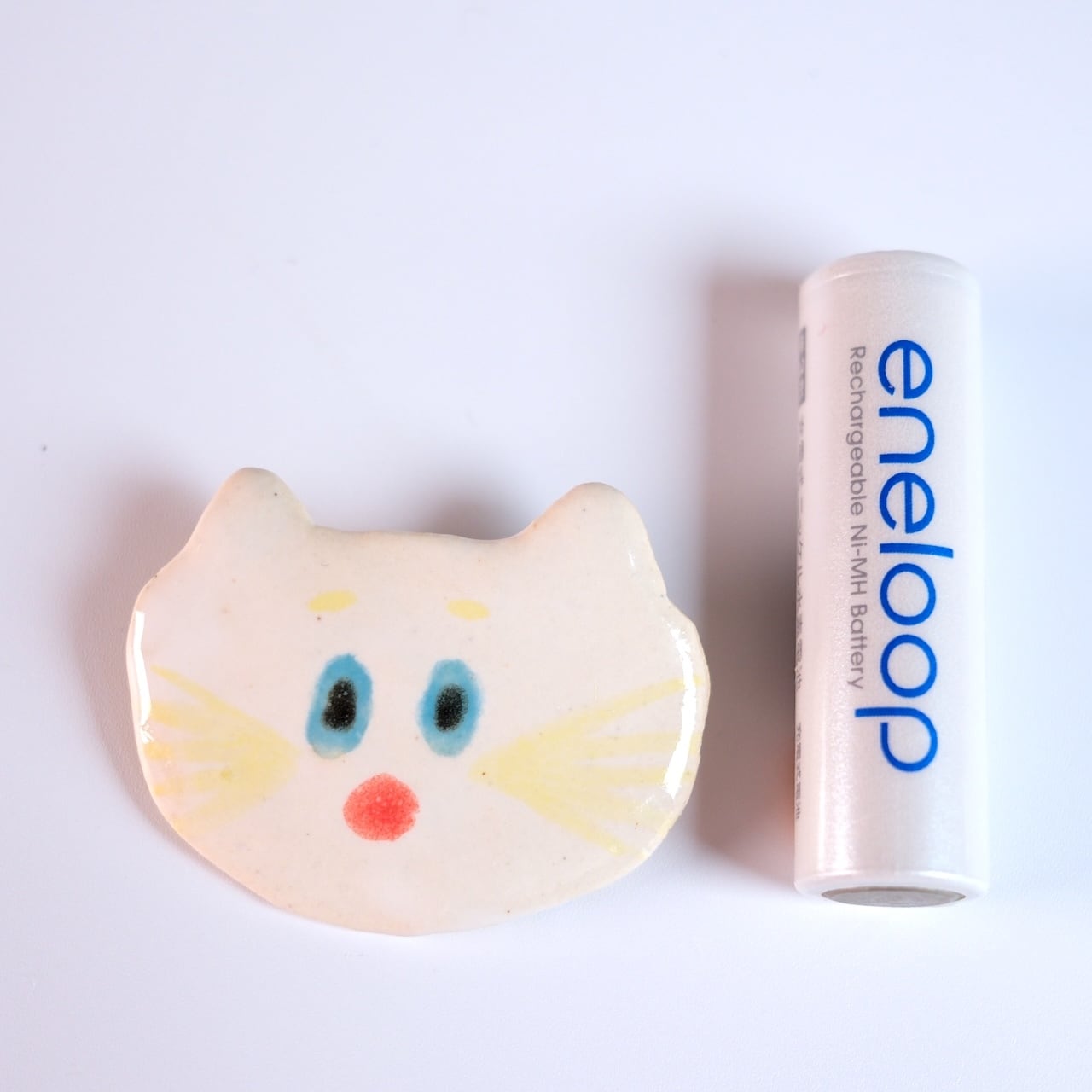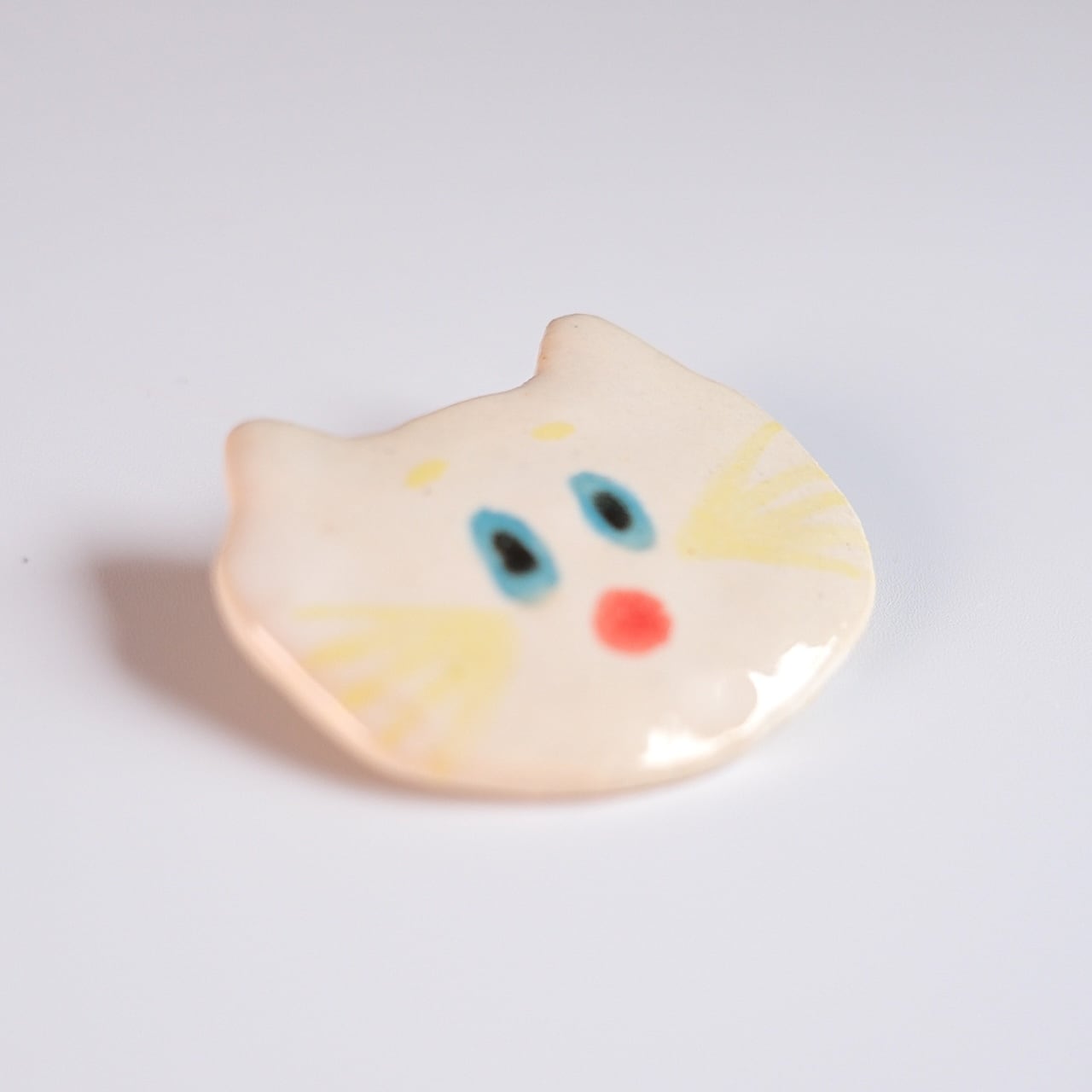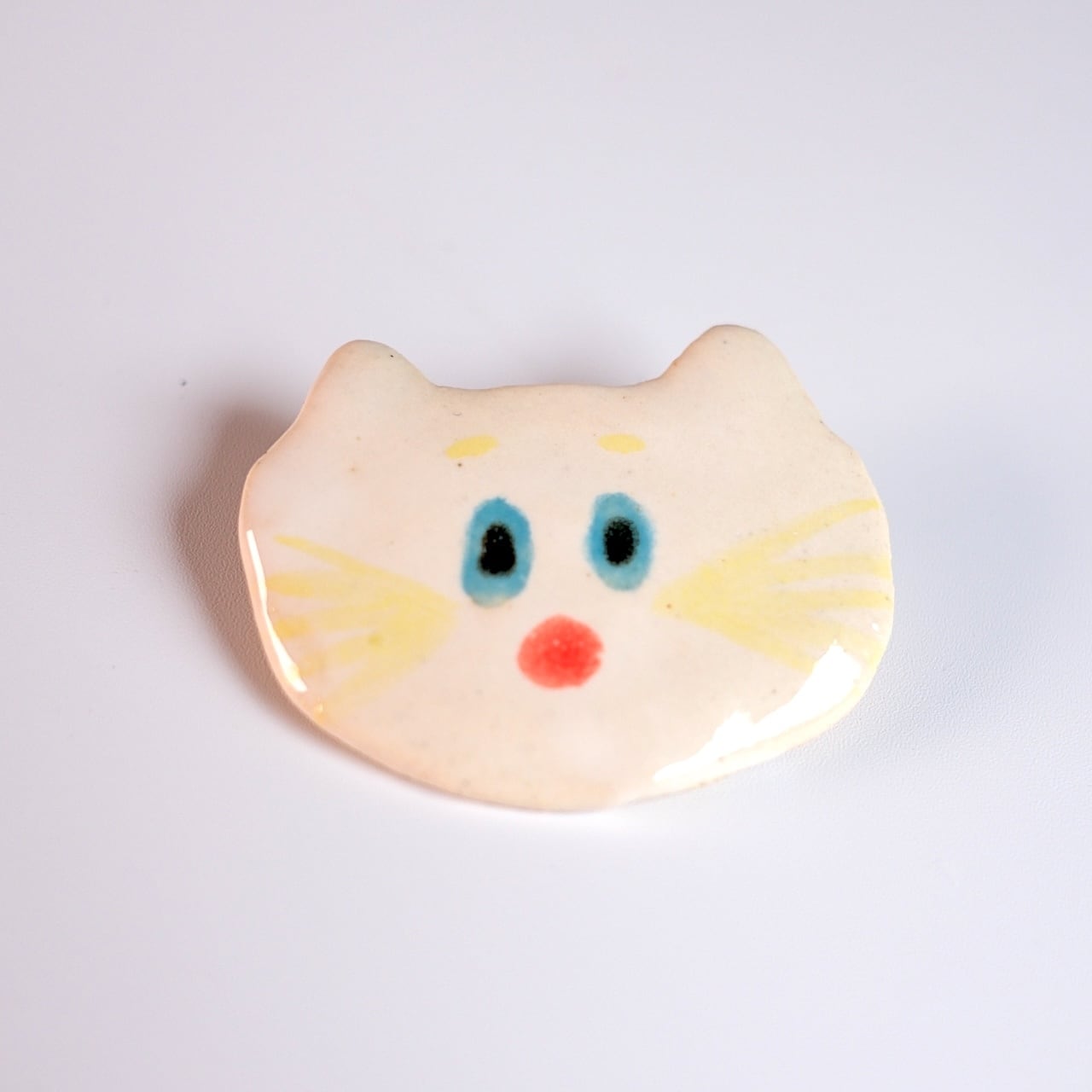 ぽっ!なんとも言えない表情のねこのブローチ。