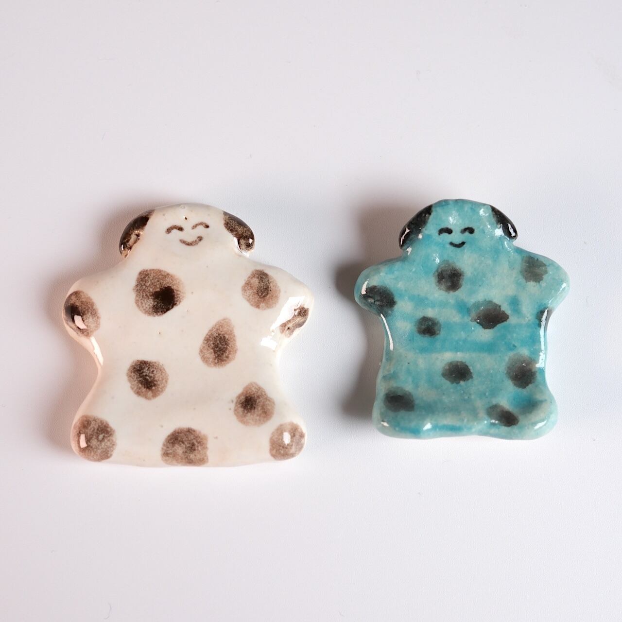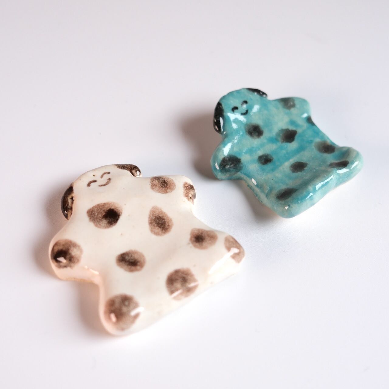 白いわんこは平らな形で、ブルーのわんこはほんの少し少し丸まっています。