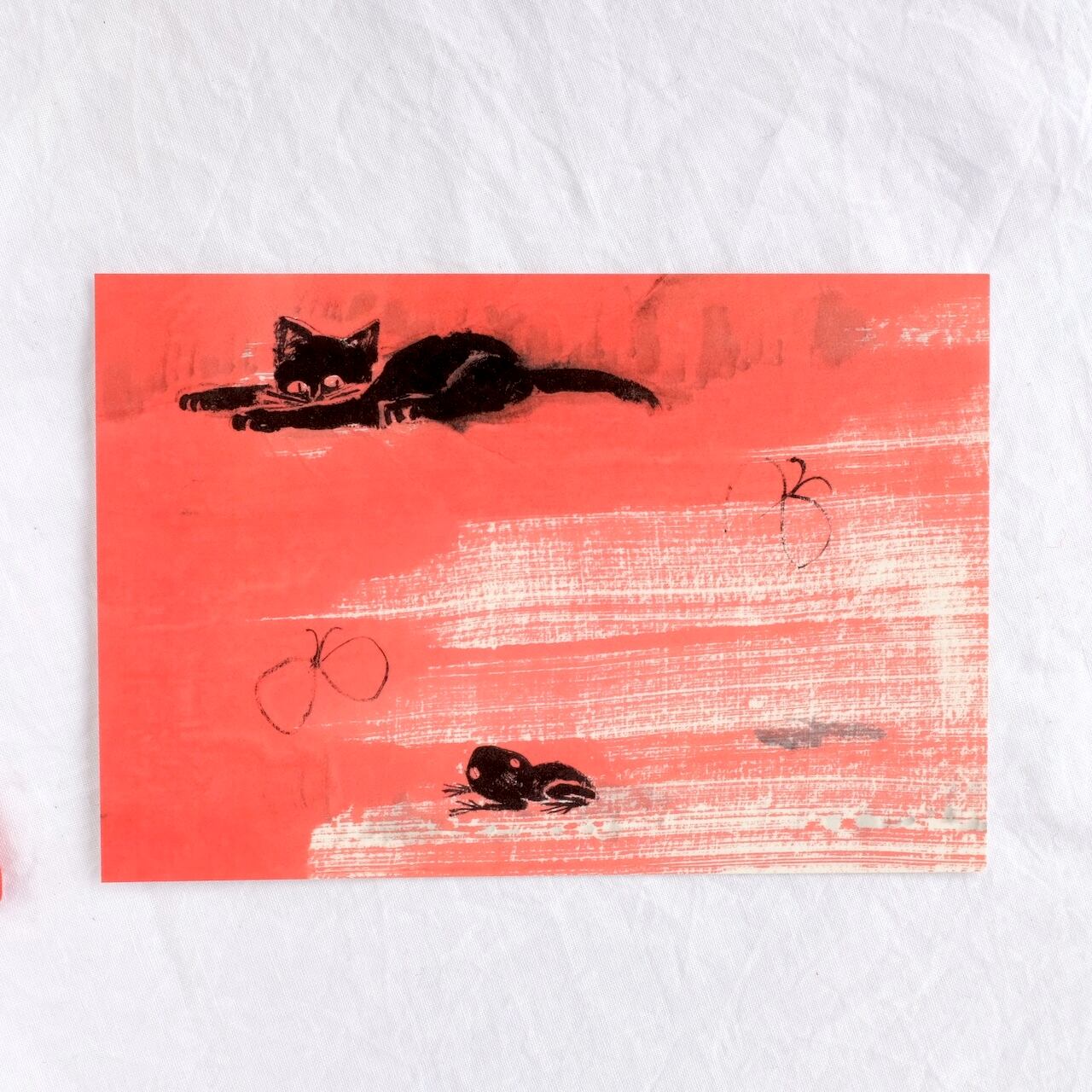 【きくちちき】ポストカード「しろねこくろねこ・あか」